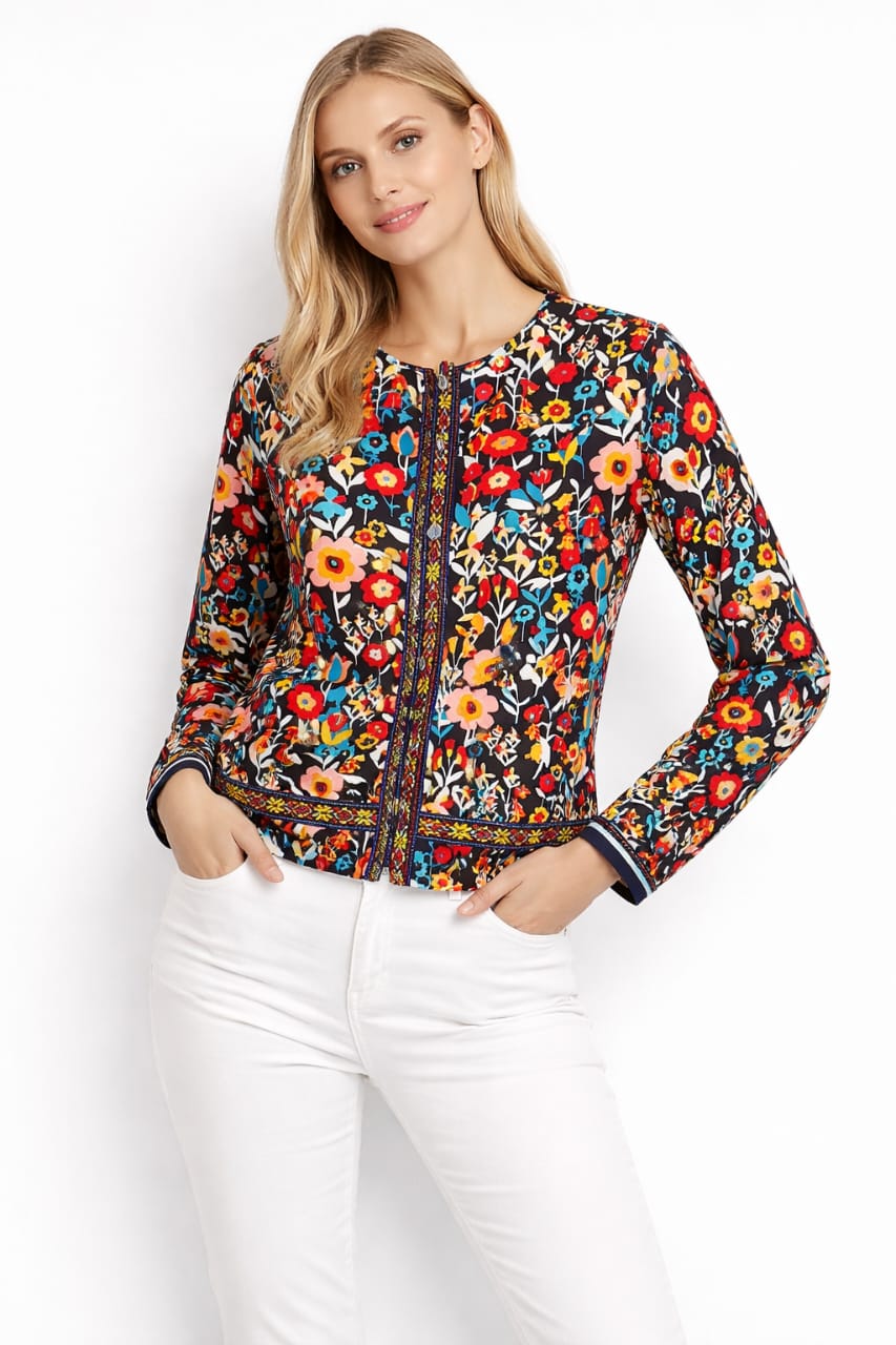 Vibrant Floral Print Jacket - Size L - L (40)