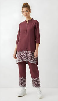 Maverick Fusion Sleeveless Lace Work Co-ords Set - Free Size Upto 38 (M) / Maroon