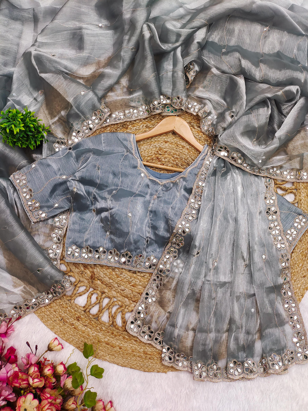 Maverick Fusion Premium Burberry Saree Set - Pale Green