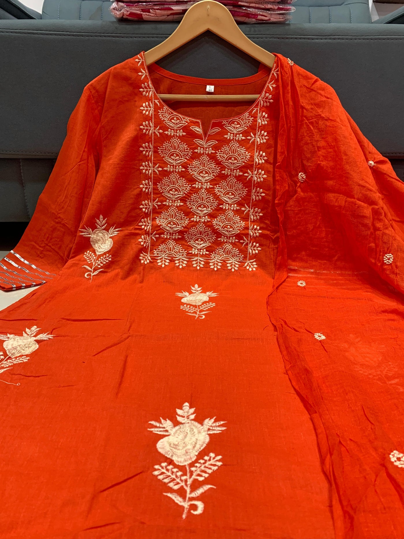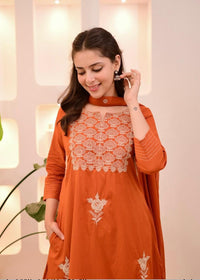 Maverick Fusion Embroidery Kurti Set - Orange / M (38)