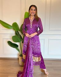 Maverick Fusion Designer Festive Kurti Pant Set - M (38) / Purple