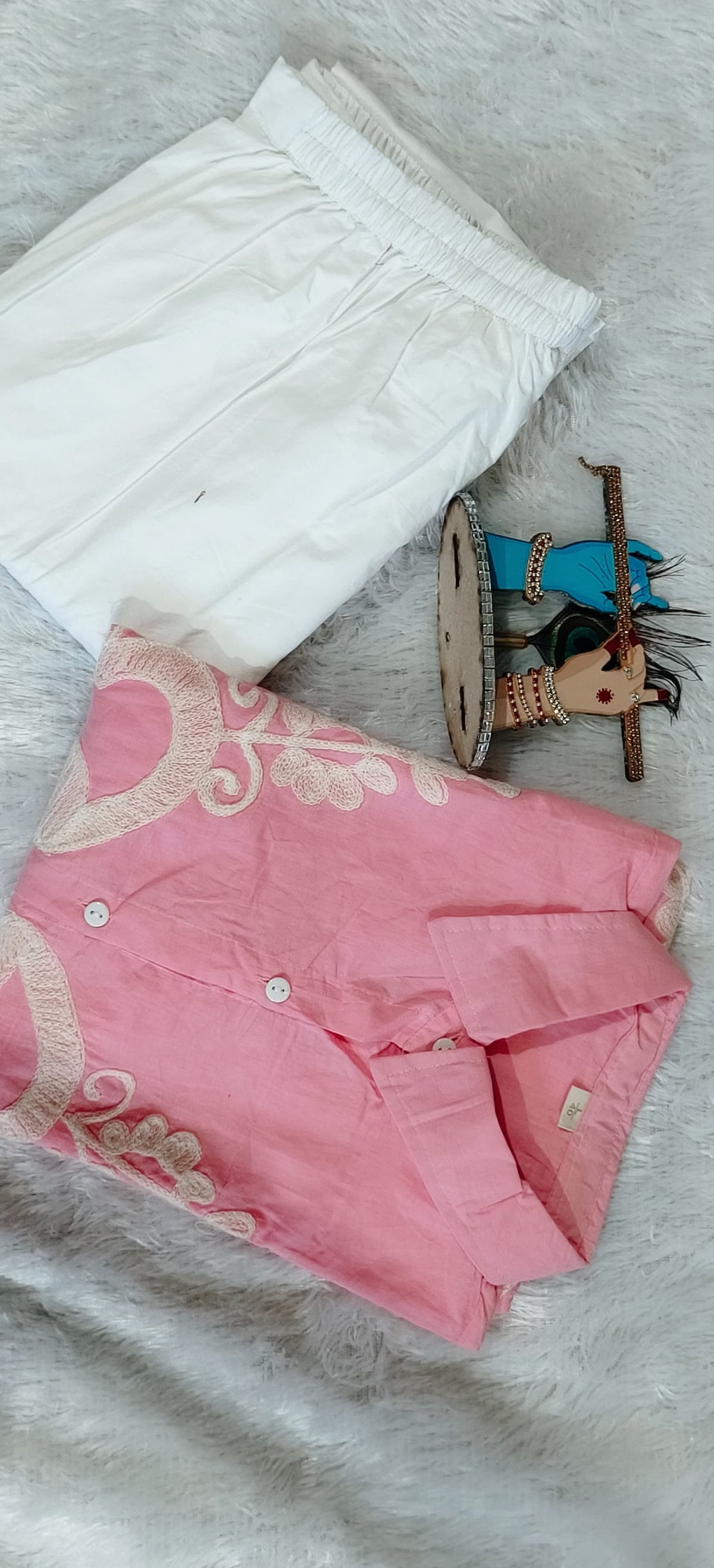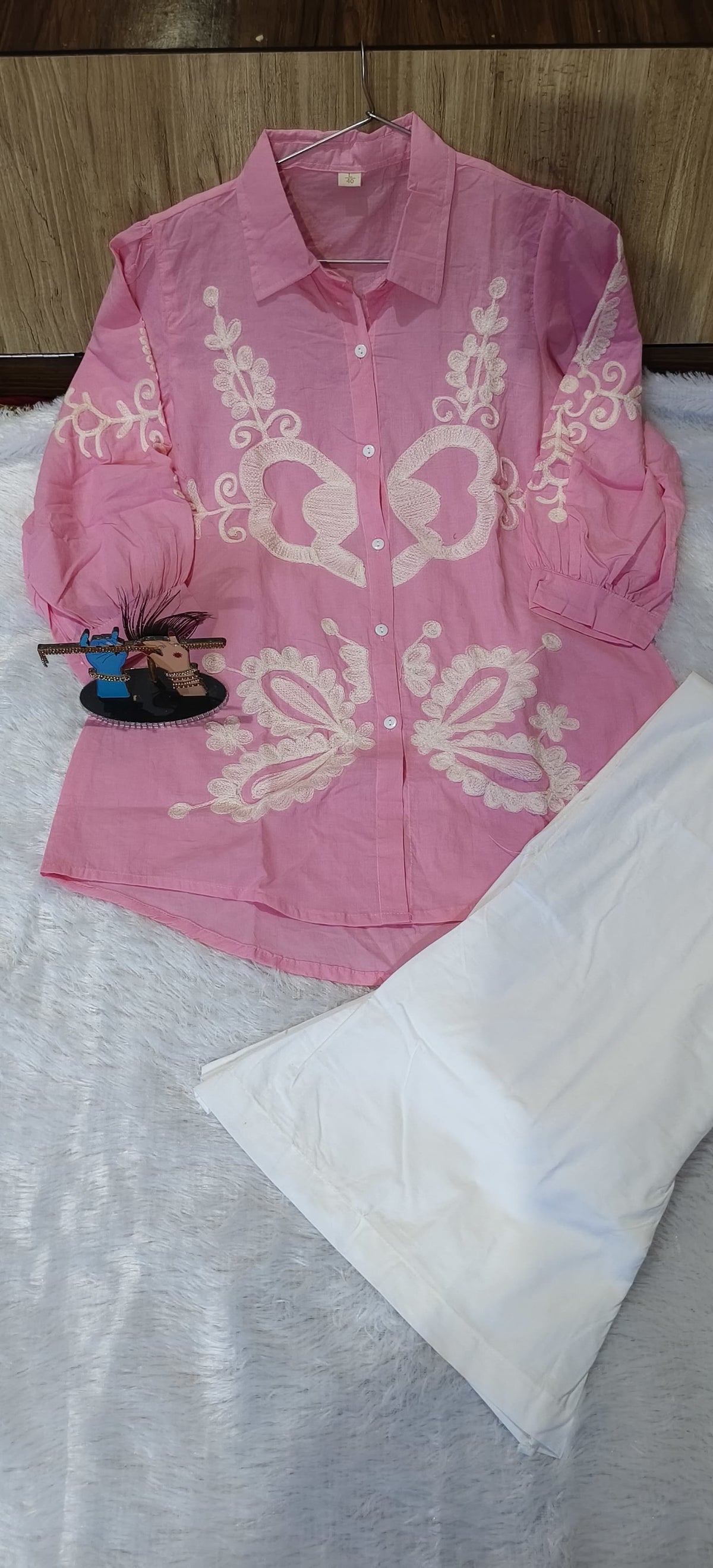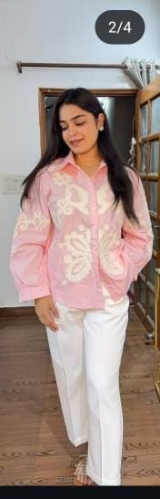 Maverick Fusion Pure Cotton 60×60 Top Bell Bottom Poplin Pant - M (38) / Pink