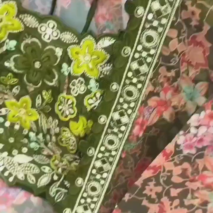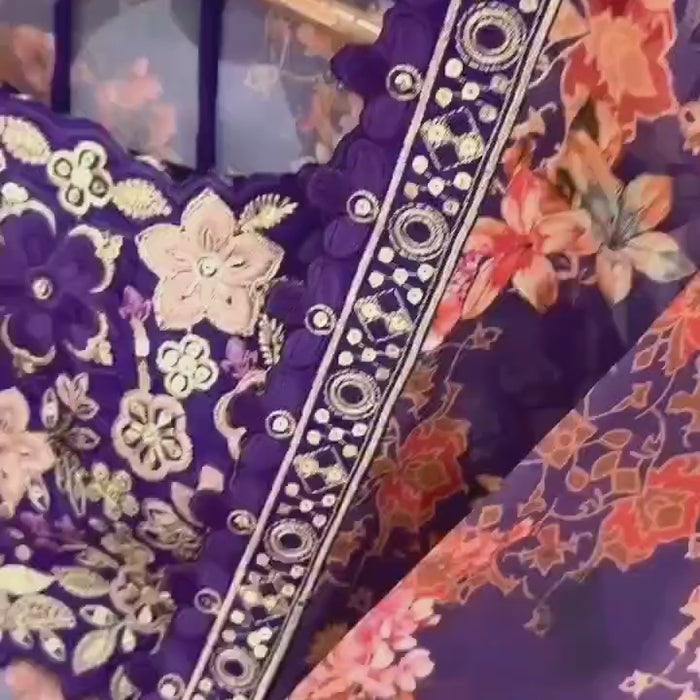 Koti Fabric : Heavy Foux Georgette With Beautiful Floral Digital Print With Embroidery 5 mm Sequence Work With Full Sleeves